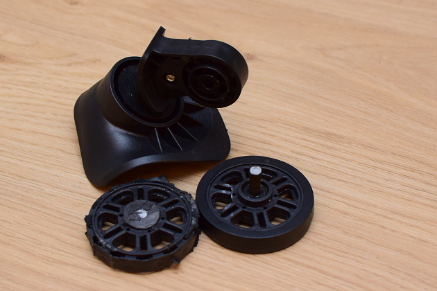 Vyměnit pevná nebo otočná kolečka není s našimi návody žádný problém. Stále častěji se však setkáváme s dotazy týkající se oprav dvojitých koleček. Přinášíme proto návod na opravu dvojitých koleček, který je rozdělen do dvou částí. První část popisuje, jak opravit samotná kolečka. Druhá část se věnuje opravě uchycení kolečka, protože kolečko často jaksi zmizí i se svým uchycením a z kufru pak trčí pouze montážní trn.
