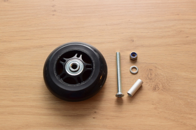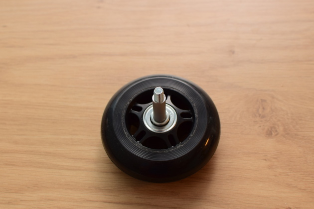 Protože původní osička měla průměr 8 mm a kolečko použité pro opravu mělo zase průměr osičky 6 mm, bylo nutné použít trubičku pro adaptaci osičky z 6 mm na 8 mm. Elegantnější, avšak o něco nákladnější, by bylo vyměnit na nových kolečkách 6 mm ložiska za 8 mm. Jak na to, popíšeme v příštím návodu.